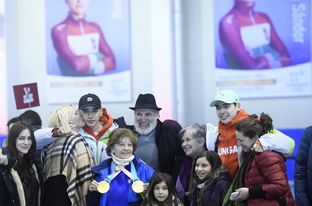 Több száz fős lelkes tömeg, családtagok, barátok, szurkolók és a sajtó munkatársai fogadták vasárnap kora délután a budapesti Gyakorló Jégcsarnokban a phjongcshangi téli olimpiáról hazatért magyar sportolókat.
