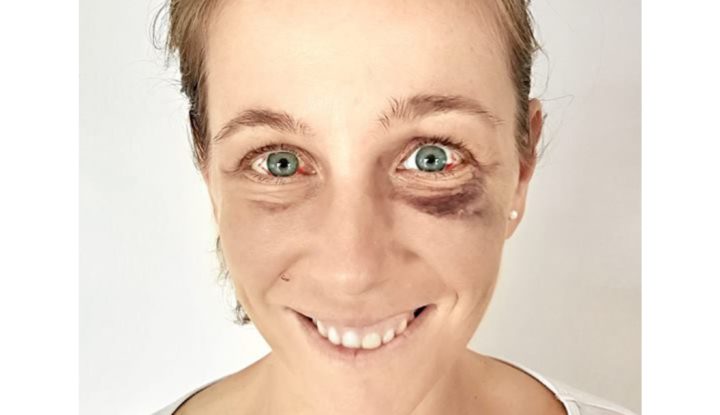 Posztjához egy mosolygós fotót csatolt, melyen jól látszanak még az ütések nyomai az arcán.