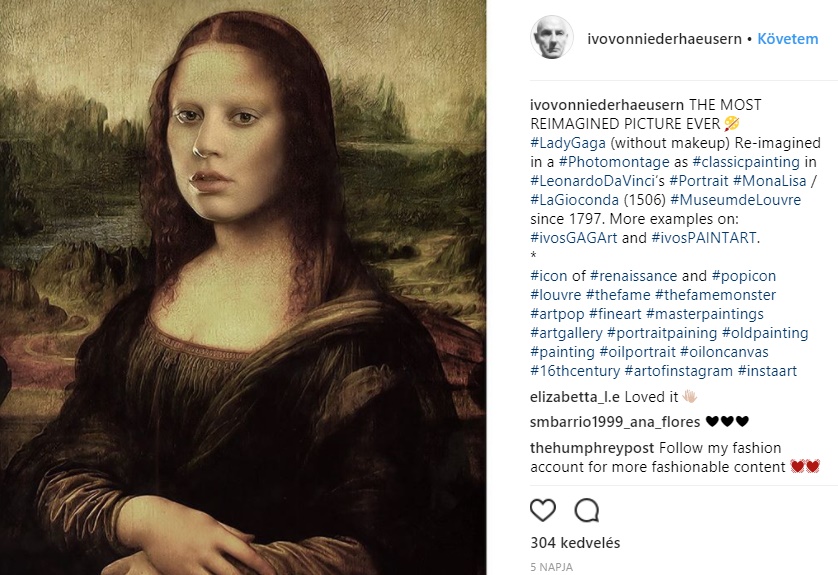 Gondolkozott már azon, hogy nézhetne ki a Mona Lisa, ha Lady Gaga állt volna modellt? Ha igen, akkor ez az a dicsőséges nap, amikor fény derül a válaszra. Ivo von Niederhäusern hírességek arcát illeszti régi képekre és festményekre.