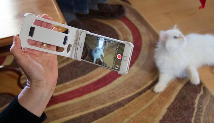 Valójában egy pofon egyszerű dologról van szó, lényegében egy olyan telefontok, ami a régi kézikamerák elve szerint szétnyitható és ezáltal kényelmesebben kezelhetővé teszi a telefont videózás alatt.