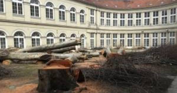 Évszázados platánok helyett tönkök, kivágott fatörzsek és gallyak borítják a Hild-udvart.