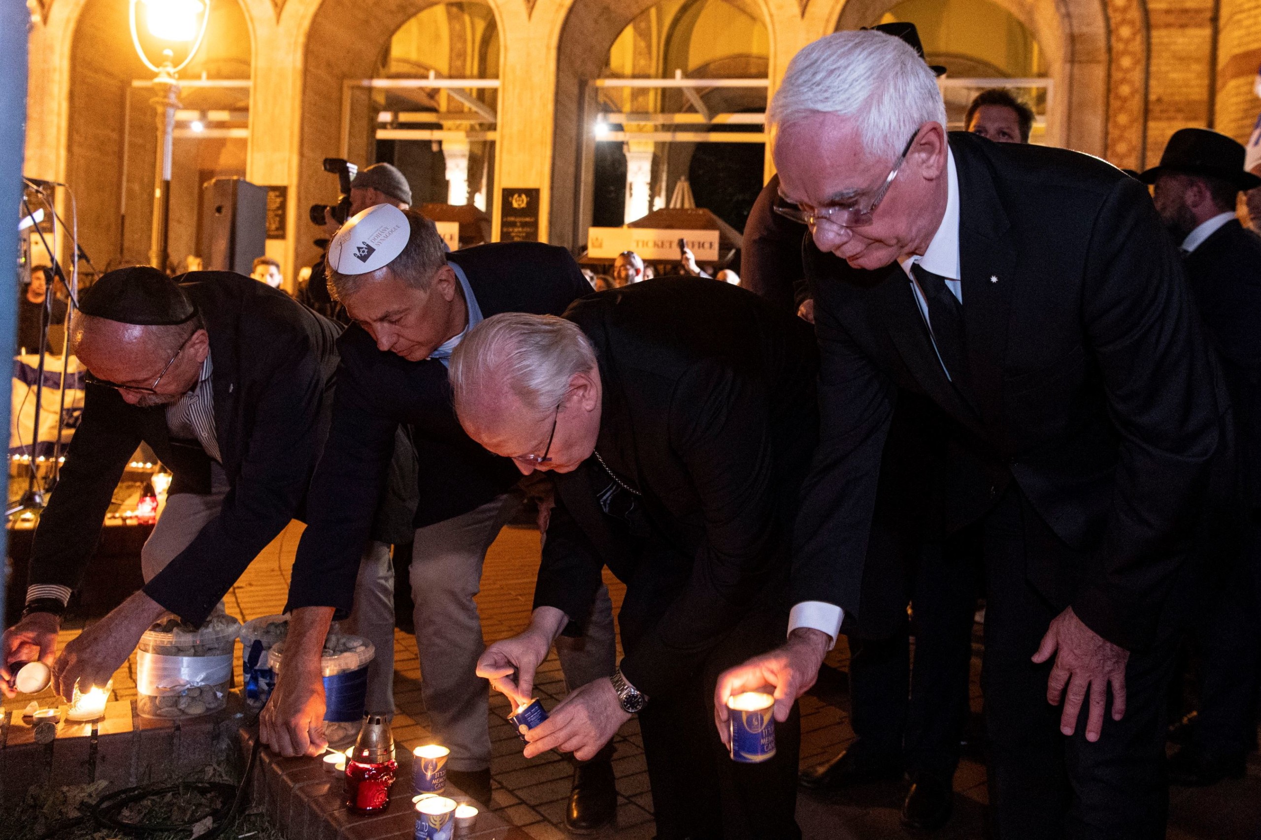 Az istentisztelet végén a résztvevők elimádkozták a kádist, majd a zsinagóga előtti téren mécseseket gyújtottak az áldozatok emlékére.