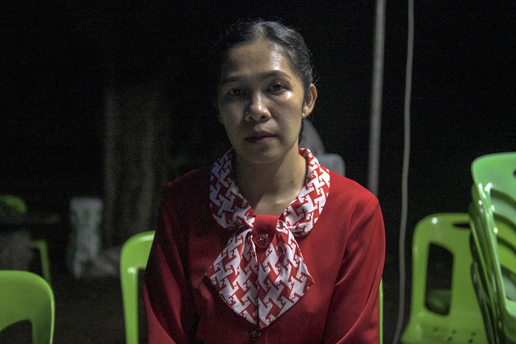 Kanyarat Suriyasri, a Hamász palesztin militáns csoport által Gázában túszként fogva tartott thaiföldi munkás, Owat Suriyasri felesége. Fotó: Amaury Paul / AFP)