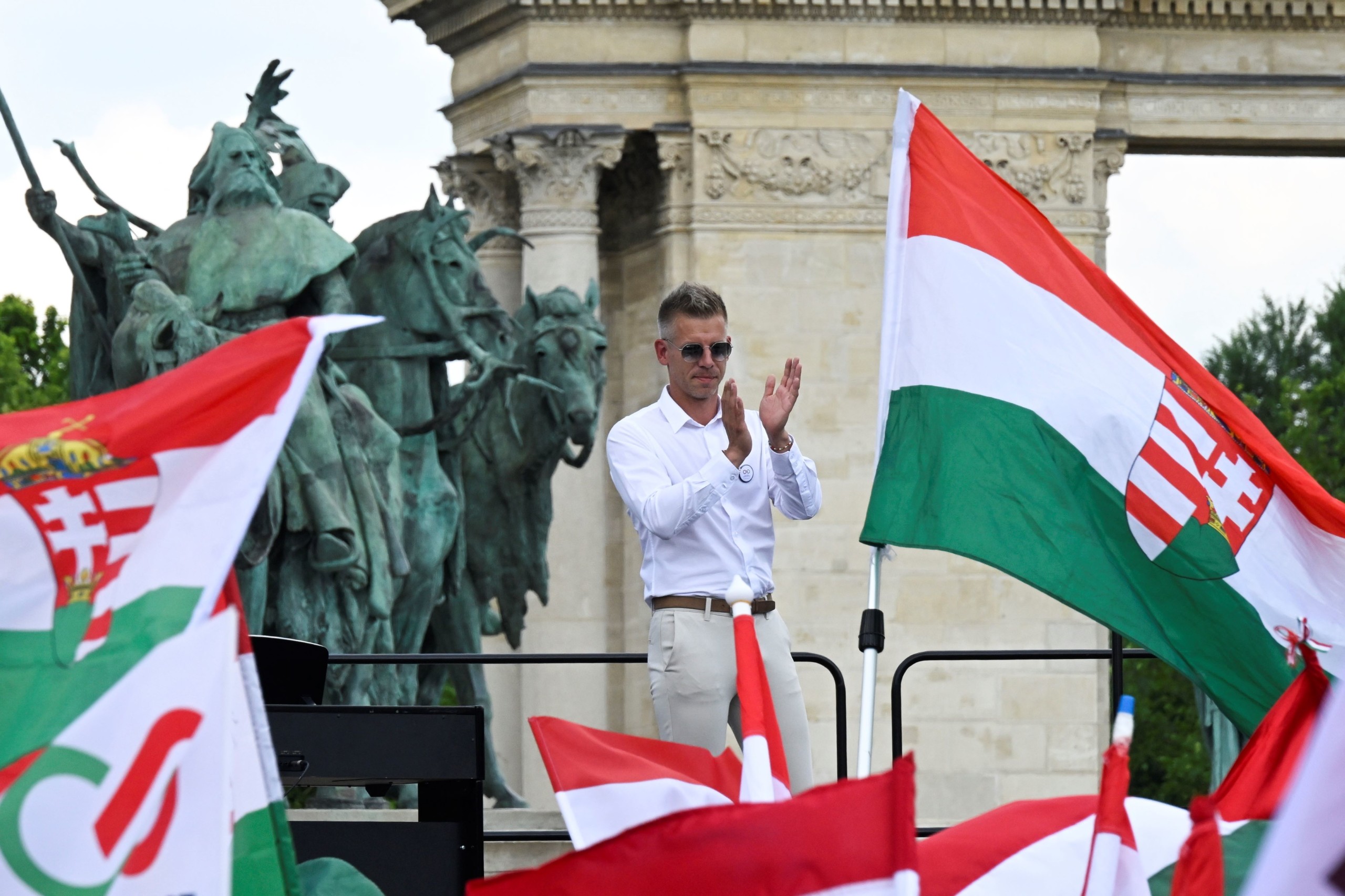 Magyar Péter, a Tisza párt alelnöke, Rónai Egon vendége volt a hétfő esti Egyenes Beszéd műsorban. Magyar azzal vádolta meg az ATV-t, hogy nem hívták meg műsoraikba a választások után. Rónai egy mappával várta, amely dokumentálta, hányszor kereste a televízió Magyart. Rónai csak erről a témáról akart beszélni, amit Magyar egy idő után megelégelt, és elhagyta a stúdiót. Magyar az eset után Facebook-oldalán "a Fidesz házi televíziójának" nevezte az ATV-t. Emiatt a hét folyamán később elnézést kért. (Fotó: AFP)