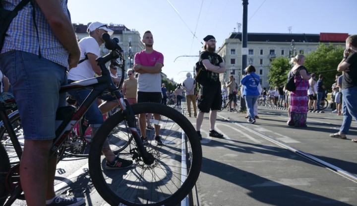 Címlapkép: A Margit hidat lezáró tűntetők a pesti hídfőnél 2022. július 18-án. A demonstrálók a kisadózó vállalkozások tételes adójáról, a katáról szóló törvény szigorítása és a rezsiköltségek emelkedése ellen tüntettek. (MTI/Koszticsák Szilárd)