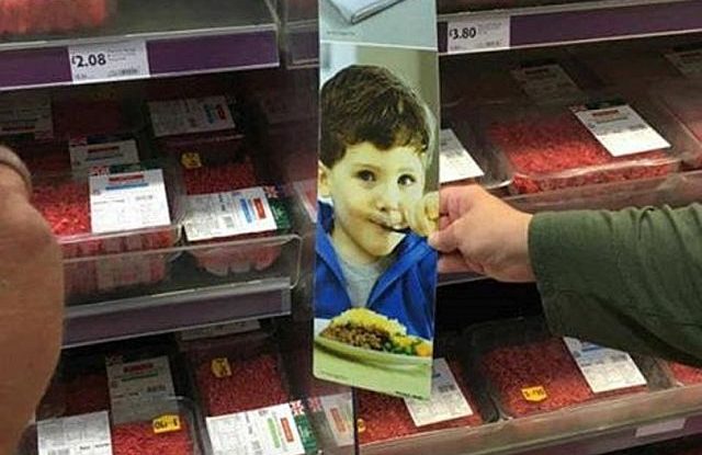 A különös eset az angliai Essexben történt. Sarah Joseph egy helyi szupermarketban, a Morrisonsban kapott frászt, amikor az üzletbe járva megpillantott a saját gyerekének fotóját egy plakáton.