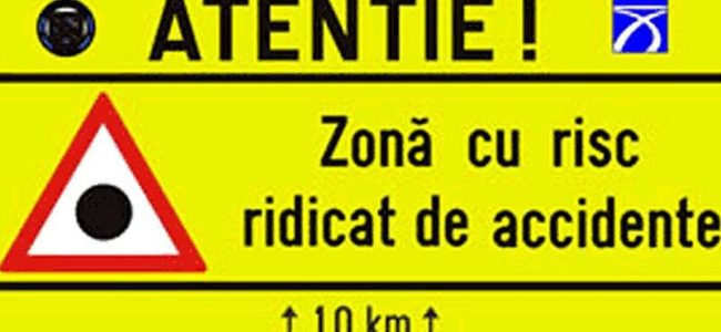 Romániában szintén olyan helyre kerül ki, ahol fokozottan balesetveszélyes az út, de már jóval nagyobb táblára, pontosan jelölve az útszakasz hosszát is, melyre vonatkozik.