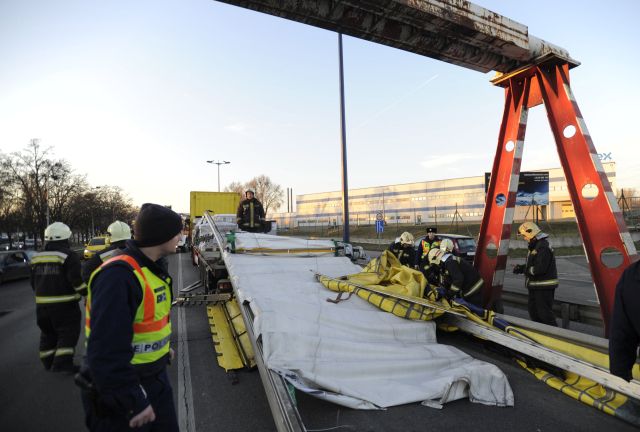 Lebontotta a sofőr a kamiont a ferihegyi gyorsforgalmin - képek