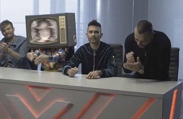 Adott ugye a zenei vetélkedő új kampányfilmje, amiben minden zsűritag felbukkan, de egynek a fején csak bekapcsolt tévét látunk, erősen szemcsés képpel.
