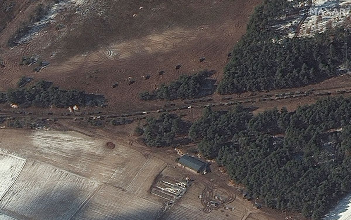 A felvételek szerint az oroszok átcsoportosítják erőiket. Páncélos egységeket láttak az ukrán fővárostól északra található Antonov repülőtérhez közeli településeken. A Maxar szerint több jármű bevonult az erdőbe, és a közelben található ágyúk tüzelésre készen állnak.