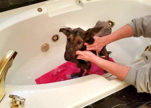„Ez nem kutya, csak néhány ág” – hitte először a kutyát megpillantó houstoni önkéntes szervezet tagja, Eric Holliday. A férfi először óvatosan közelített az állathoz, de nyilvánvaló volt, hogy a kutya nem jelent kockázat.