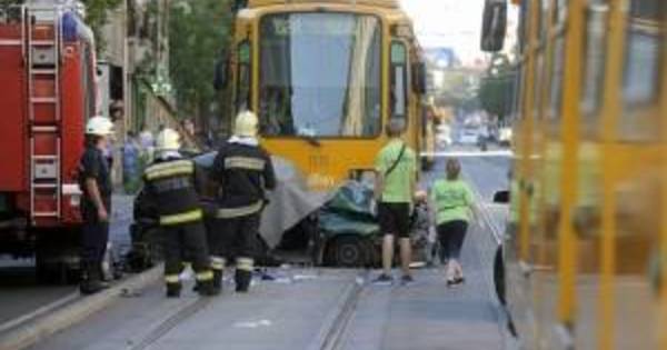Maga alá gyűrte a villamos az autót – Megrázó képek a halálos balesetről