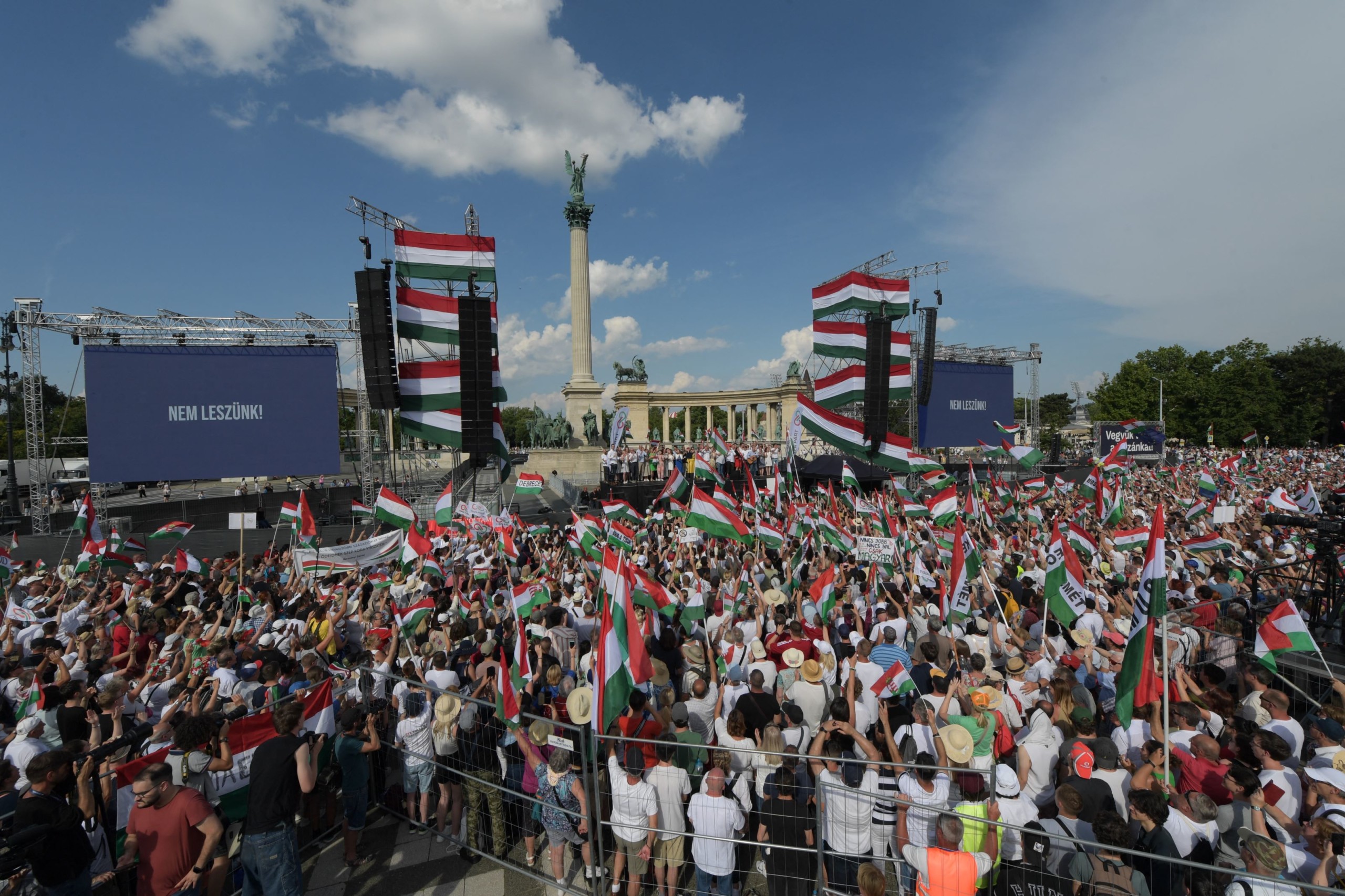 Orbán azt akarja, attól várjuk a békét, aki egykor gyarmatosított minket. A magyar miniszterelnök megint kivezetne minket Európából. “Nem hagyjuk” – skandálja a tömeg.