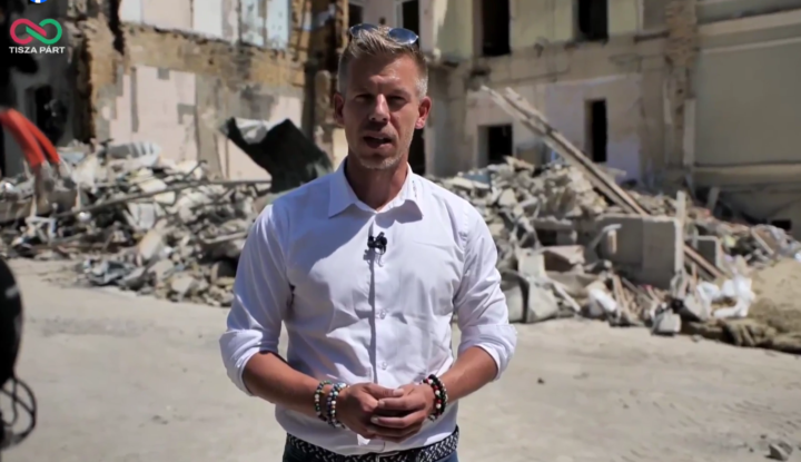 Magyar Péter a lebombázott kijevi gyermekkórház előtt jelentkezett be