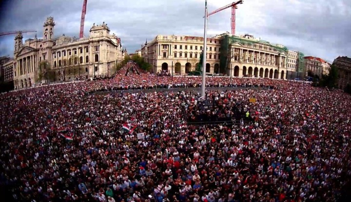 Megtelt a Kossuth tér a tüntetőkkel. Fotó: AFP