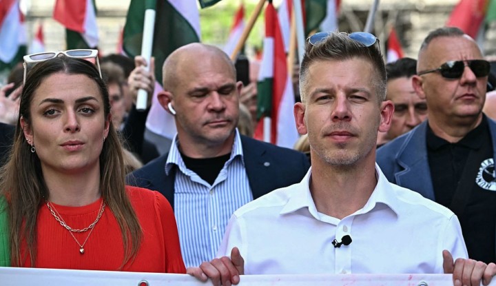Címlapkép: Vogel Evelin és Magyar Péter a 2024. április 6-ai kormányellenes tüntetésen. (Fotó: AFP)