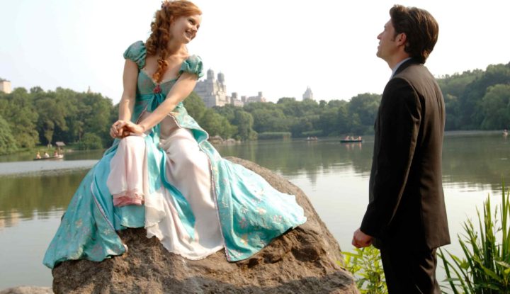 A történet szerint Giselle hercegnő gondtalanul és boldogan éldegél rajzolt világában a sármos, de kissé bugyuta vőlegényével, Edwarddal. Ám egy napon vőlegénye gonosz mostohaanyja átlöki egy másik világba, napjaink New Yorkjába. A város ridegségén megrémült hercegnőn egy barátságos, jegyben járó ügyvéd tud számára enyhíteni, aki kislányával együtt hamarosan a szépség bájosságának rabja lesz. Giselle manhattani időtöltése furcsa mellékhatásokkal lesz személyiségére, amire az őt kereső Edward megjelenésekor döbben rá..