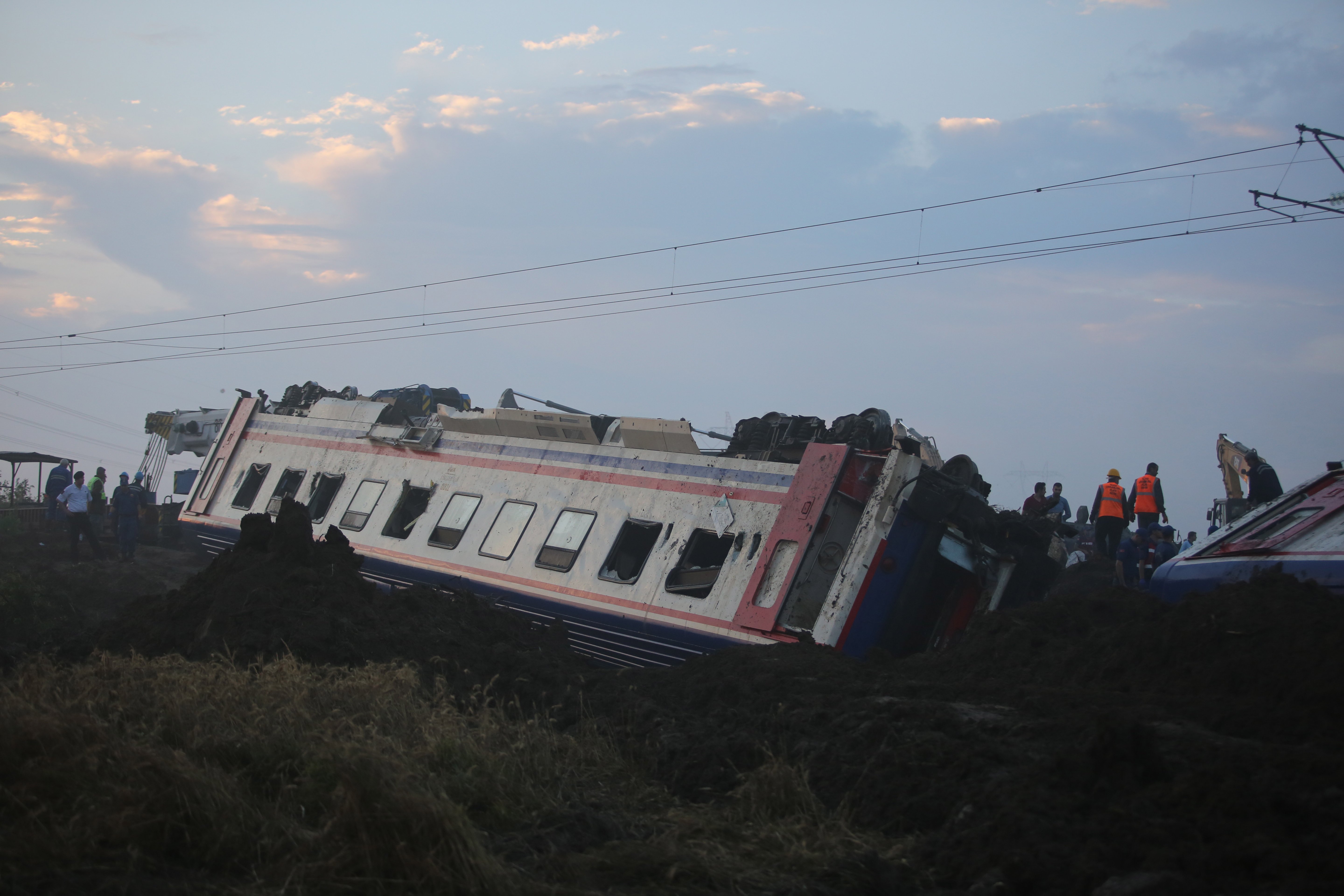 Recep Akdag miniszterelnök-helyettes bejelentette, a mentési munkálatokat hétfő reggelre befejezték. Azt is megerősítette, hogy a tragédiát a heves esőzés okozta, amely alámosta a vasúti pálya egy szakaszát, míg az Ihlas török hírügynökség felvételein az is látható, hogy a sínek az alátámasztás hiányában meghajoltak. Ahmet Arslan közlekedési miniszter szerint a síneket évente egyszer kell megvizsgálni, s ezt áprilisban meg is tették a szakaszon, ahol a baleset történt. Hozzátette, vasárnap délután fél óra alatt 32 milliméternyi csapadék esett a területen, a mozdonyvezető pedig nem láthatta a pálya alatti űrt.
