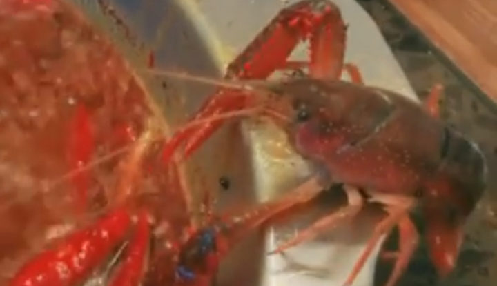 Egy kínai étteremben vették fel az alábbi felvételt, melyen az látható, hogy a rák már félig a forró levesbe került, amikor egyszercsak a jobb ollójával lenyisszantotta a balt. Valószínűleg a forróságtól lebénulhatott a bal ollója, ez akadályozta a mozgásban az állatot, emiatt vághatta le.