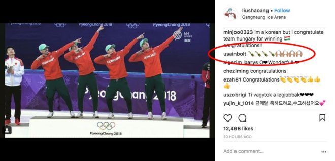 Ugye mindenki emlékszik a gyorskorcsolyázóink pózolására az olimpiai aranyérmük átvételekor? A beállás nem a véletlennek köszönhető, hanem minden idők legnagyobb sprinterének, Usain Boltnak. Az ő védjegyévé vált ez a mozdulat és a phjongcshangi olimpia előtt videóüzenetben azt ígérte, hogy azok a nyertesek, akik leutánozzák ezt, dedikált üveges pezsgőt kapnak tőle. A gyorskoris fiaink szó szerint ráhajtottak erre, amit az Instagramon közzétett fotójuk alatt „regisztrált” is Bolt.