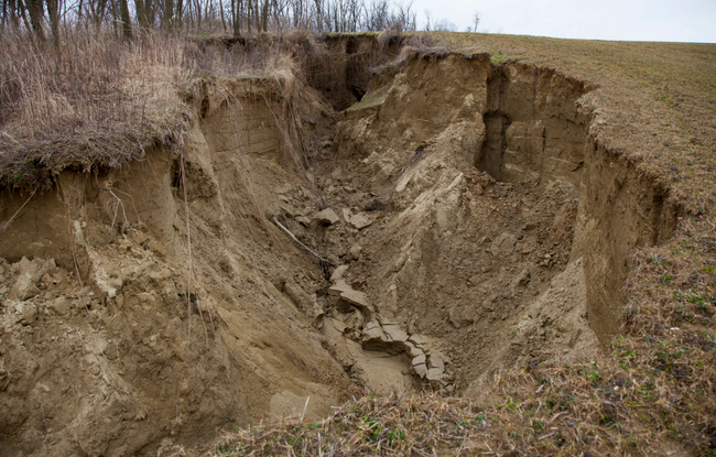 Az elmúlt hetek időjárása miatt nedvességgel telítődött talaj pedig nem tudta befogadni az így keletkezett vizet, ami mostanra levonult, ám a terület úgy néz ki, mintha megnyílt volna a föld.