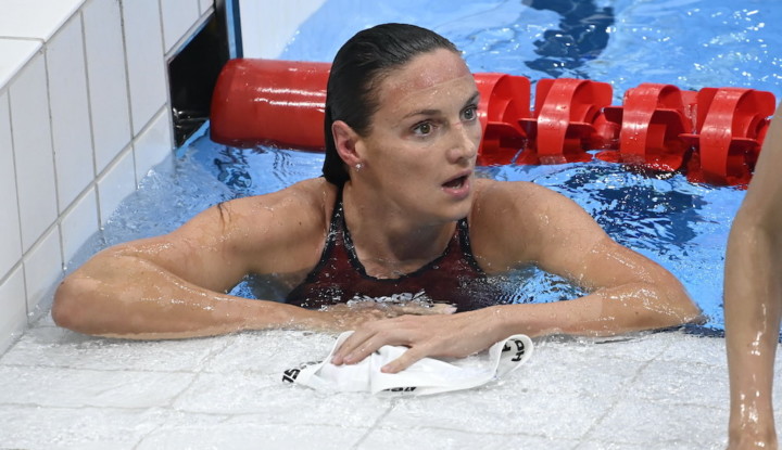 Hosszú Katinka a női 400 méteres vegyesúszás döntője után. MTI/Kovács Tamás