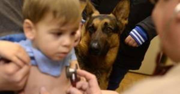 Az óbudai orvos hagyta, hogy a német juhász vizsgálat közben is ott legyen a gyerekek közelében.