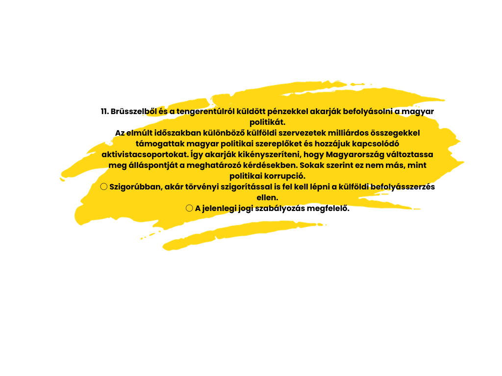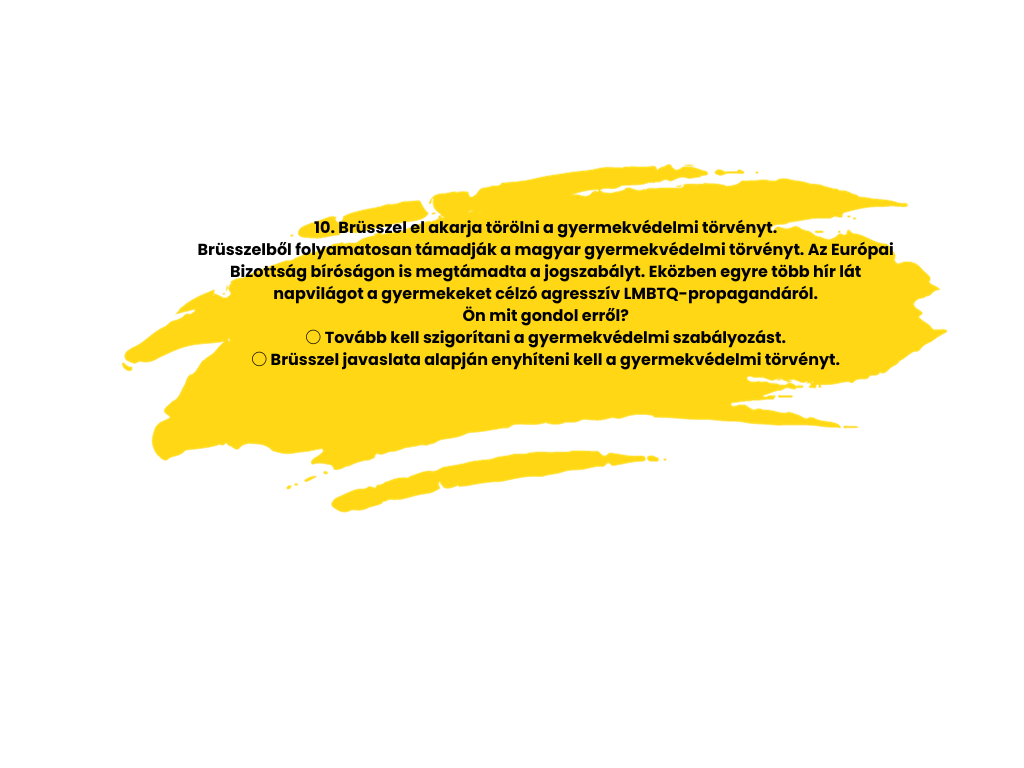 Brüsszel eltörölné, megszüntetné, ránk kényszerítené... - szerepel a kérdések egy részében. Mutatjuk mind a tizenegyet.