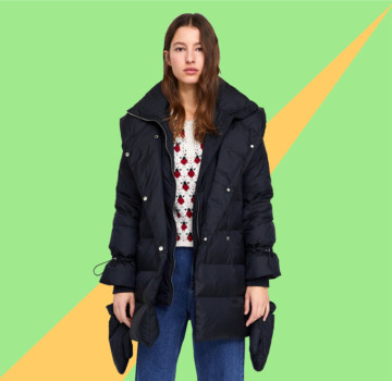 Több színben is kapható a Zara tollal töltött Puffer kabátja. Az egyedi tervezésű télikabáthoz kesztyű is tartozik. 25.995 forint.