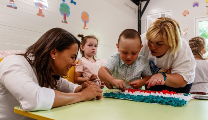 Címlapkép: Novák Katalin köztársasági elnök (b) helyi óvodások foglalkozását tekinti meg a Kijev megyei Zahalci településen 2023. augusztus 23-án. A községben magyar kormánytámogatás bevonásával, a Magyar Ökumenikus Segélyszervezet koordinálásában jelenleg is tart a harcokban jelentős károkat szenvedett óvoda és iskola épületének újjáépítése. Fotó: MTI/Nemes János