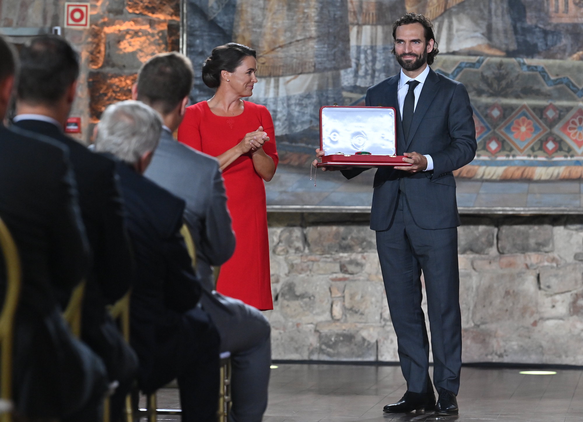 Magyar Szent István Rendet vehetett át Karikó Katalin kutatóbiológus és Szilágyi Áron háromszoros olimpiai bajnok kardvívót, míg a Magyar Becsületrendet Böjte Csaba ferences rendi szerzetesnek adta át az államfő. Novák kiemelte: mindhárom díjazottnak fontos a magyarsága, a közösségért dolgoznak, munkájukat szolgálatnak is tekintik. Közös bennük az emberségük, a család fontossága, s hogy mindannyian az egy mindenkiért elv szerint élik életüket.
