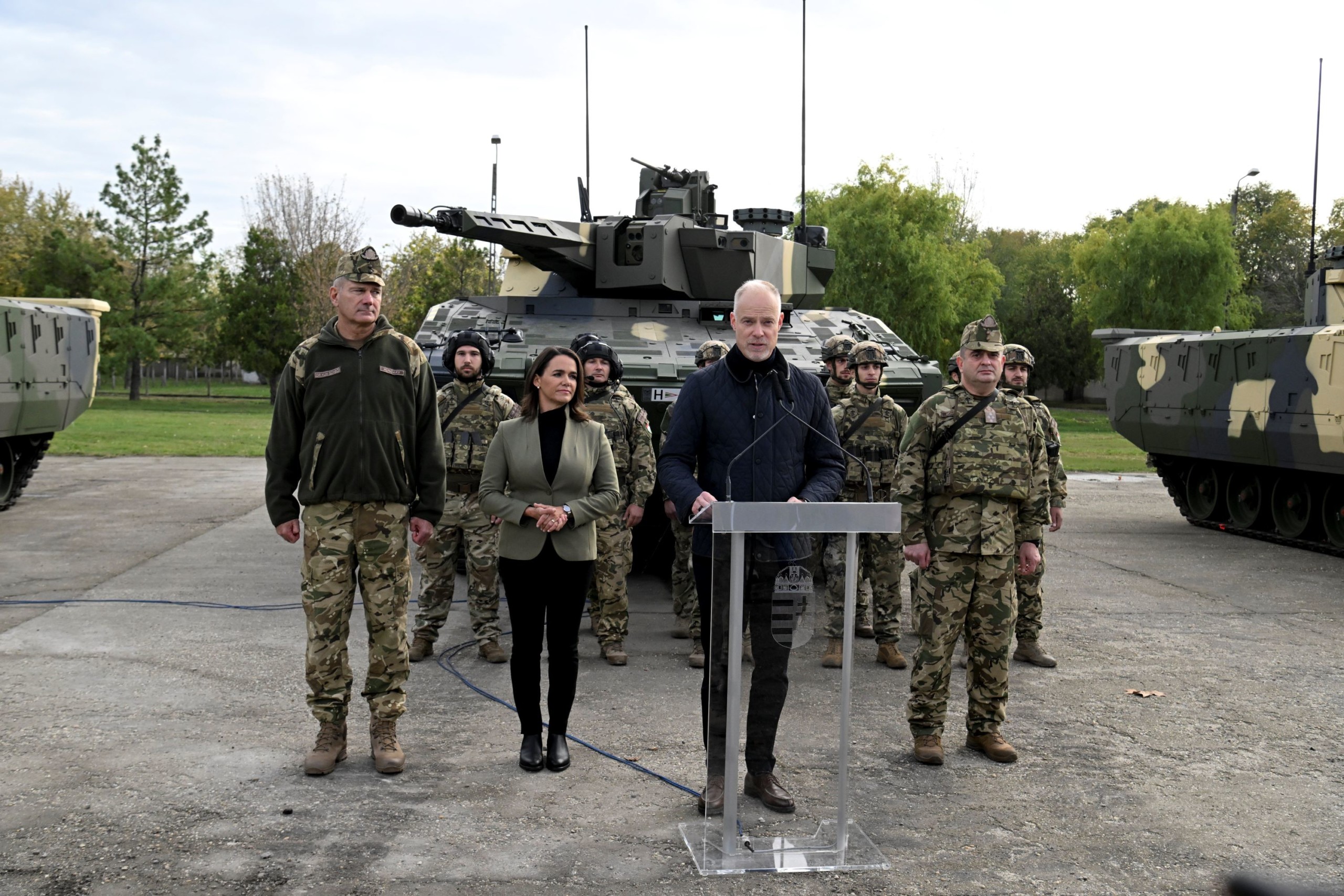 A köztársasági elnök, a Magyar Honvédség főparancsnoka is részt vett az országos hadgyakorlat megnyitóján. Fotókon, ahogy sisakot adtak Novák Katalinra és beült egy páncélozott gyalogsági harcjárműbe.