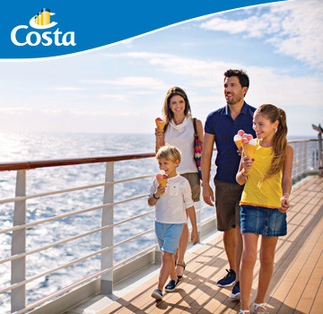 A szemfüles utazó a Costa európai 7-14 napos túráira már nagyon kedvező áron, 250 EUR alatti összegért is el tud menni. Sőt, a szülőkkel egy kabinban utazó, 18. évét be nem töltött egy vagy két gyerek teljesen ingyen nyaralhat!