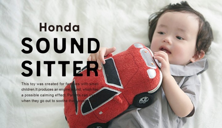 Sound Sitter néven egy olyan puha játékautót készítettek, melynek a belsejében levő hangszóróból egy autó motorhangja hallatszik – naná, hogy egy Hondáé -, ami állításuk szerint nyugtató hatással van a babákra.
