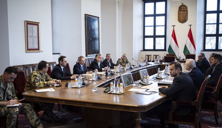 Címlapkép: A Miniszterelnöki Sajtóiroda által közreadott képen Orbán Viktor miniszterelnök (b5) a nemzetbiztonsági operatív törzs ülésén a Karmelita kolostorban 2022. február 24-én. Az ülést az ukrajnai katonai műveletek miatt hívta össze a kormányfő. Orbán Viktor mellett Varga Mihály pénzügyminiszter (b3) és Pintér Sándor belügyminiszter (b4), miniszterelnök-helyettesek, Benkő Tibor honvédelmi miniszter (b6), valamint Ruszin-Szendi Romulusz altábornagy, a Magyar Honvédség parancsnoka (b7).
