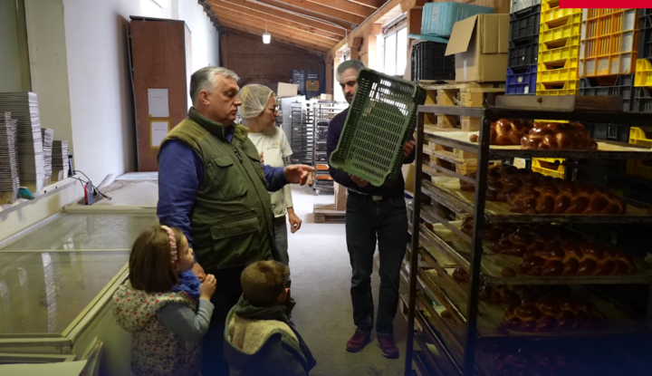 A miniszterelnök és unokái a kenyérsütés folyamatát is megnézték, ezen a ponton Orbán megjegyezte a gyerekeknek, hogy látták-e, milyen gyorsan kell dolgozni, itt “nem lehet lustálkodni, nyomni kell” – mondta.
