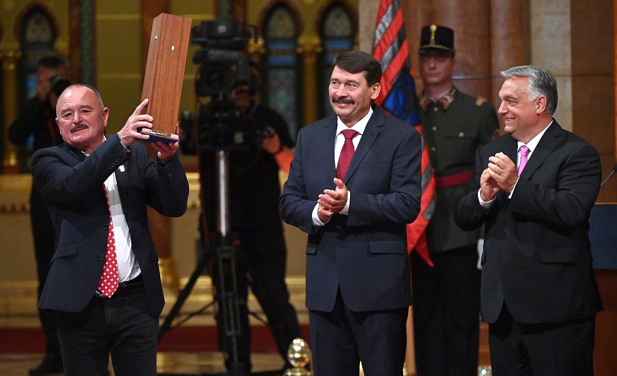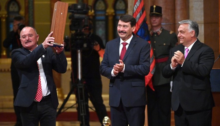Kossuth-díjat kapott Nagy Feró még március 15-én, de a koronavírus-járvány miatt csak az augusztus 20-ai nemzeti ünnepen vehette át a rangos elismerést. Ehhez gratulált most Orbán Viktor miniszterelnök is, aki Facebookon osztott meg egy közös fotót, amihez kísérőként egy pár szavas köszöntőt is írt. A fotót – amelyen a zenész a kézmozdulatával is üzent -, itt nézheted meg.