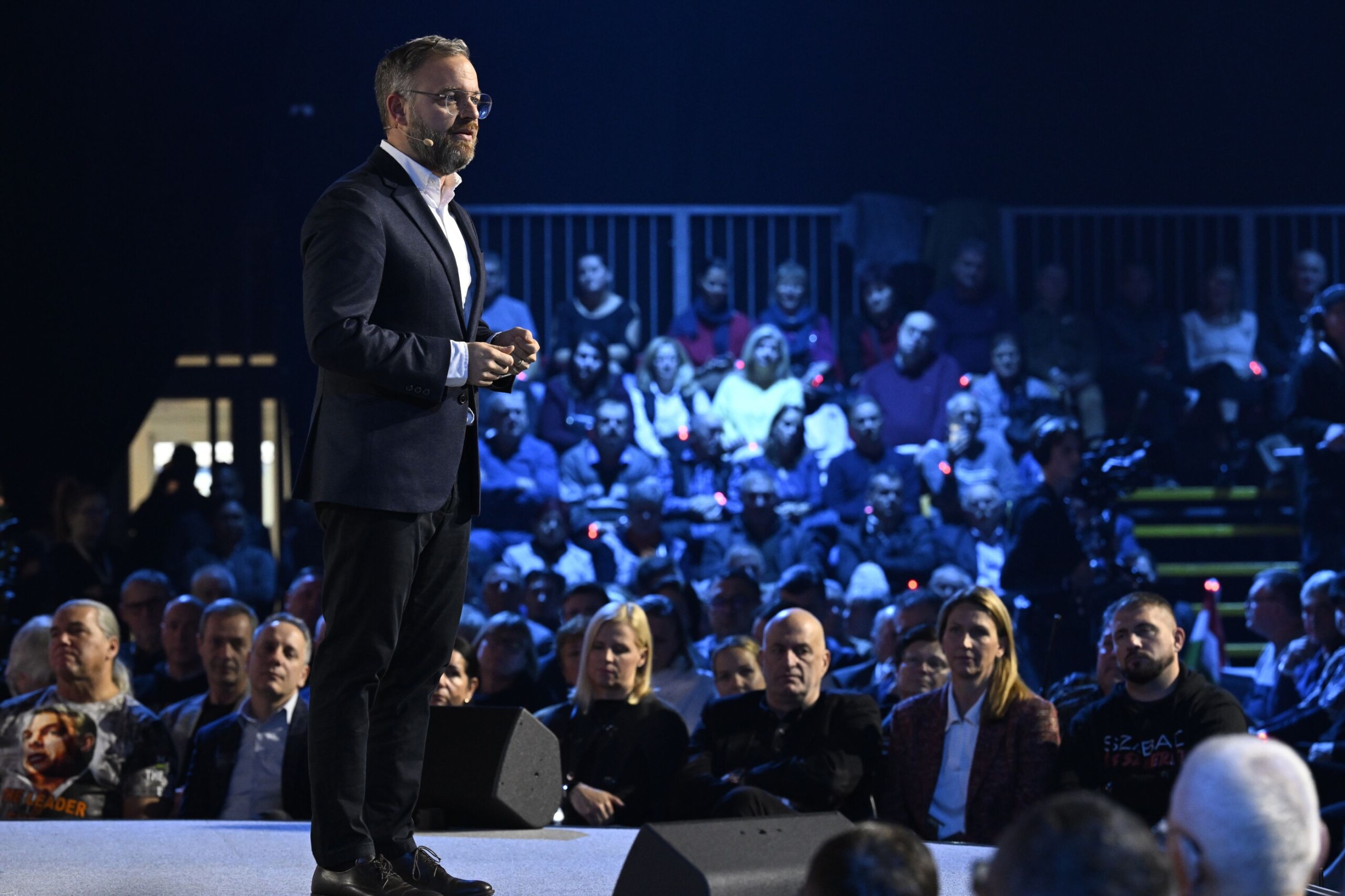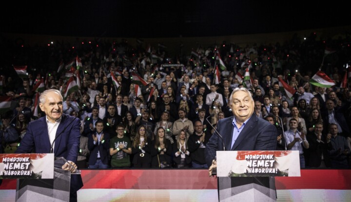 Erősen indult a DPK kaposvári, "háborúellenes gyűlése" szombaton: Rákay Philip impexes komcsinak nevezte Kapitány Istvánt, majd színpadra szólította a volt III/II-es Szita Károlyt. Lázár János emlékezetes beszédet mondott: korábbi balatonalmádi mondatai miatt elnézést kért a cigányságtól, majd szembeállította a vidéki és a fővárosi lakosságot. Orbán Viktor egy rövid beszéd után ezúttal is kérdésekre válaszolt: kaposvári pálinkázásáról sztorizott, hosszasan beszélt Ukrajnáról, Trumpról és a tanárokról, miközben kimondta ellenfele, Magyar Péter nevét, noha a kihívóit sosem szokta nevén nevezni a kampányban. Üzent is: "Sose mondd a krokodilnak, hogy nagy a pofája, amíg nem értél át a túlsó partra". (A 24.hu percről percre közvetítése elérhető a galériánk alatti linken.) Fotó: MTI/Illyés Tibor