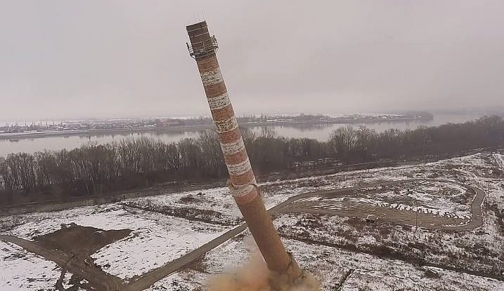 Összedőlt a lábatlani papírgyár kéménye - Videó