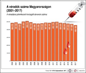 Az MTI egy látványos és tanulságos grafikont tett közzé a véradók számáról – hívja fel a figyelmet a 24.hu cikke. A távirati iroda 2000 és 2017 közötti adatokat vitt grafikonra, ami szerint tavaly jelentős mértékben csökkent a véradásra jelentkezők száma.