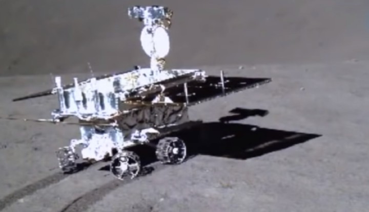 A videó azt mutatja, ahogy a rover a Hold felszínén forgolódik.