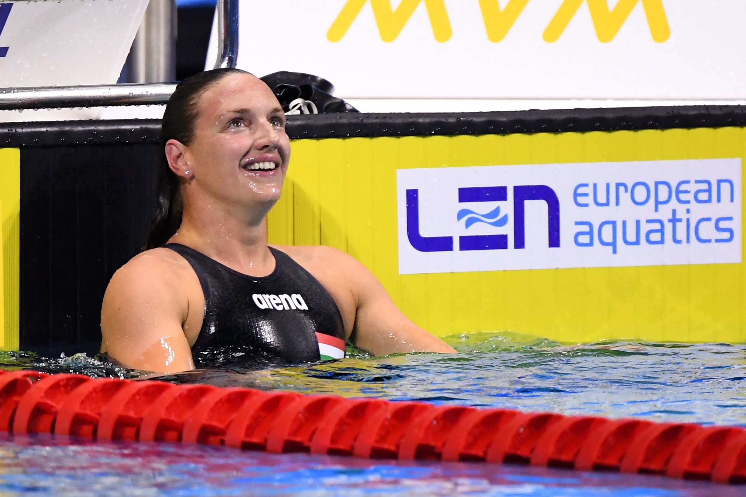 Bejelentette visszavonulását a háromszoros olimpiai bajnok úszó, Hosszú Katinka. "Most, ahogy visszatekintek a karrieremre, óriási beteljesülést érzek. Az érmek és rekordok értékesek, de ami a legmélyebben megmaradt, az az úszás iránti örök szeretetem. (…) Remélem, a következő években megoszthatom ezt a szenvedélyt másokkal—tanítva a fiatal úszóknak azt a varázslatot, amit a vízben találtam, és bátorítva őket, hogy kövessék az álmaikat" - írta a 35 éves klasszis. Fotó: AFP