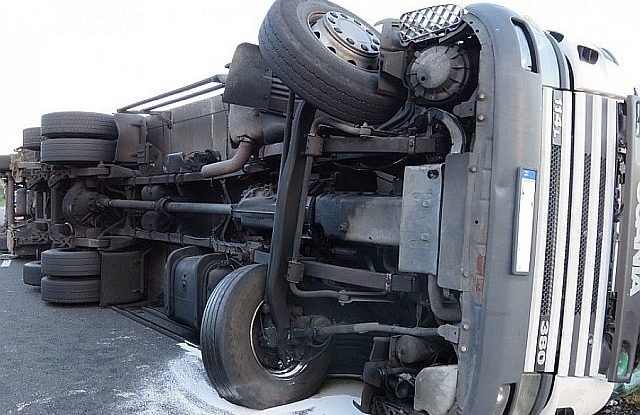Oldalára borult egy kamion az M0-s autóút 19-es kilométerénél szerdán kora délután, a szigetszentmiklósi lehajtónál, Csepel irányában .