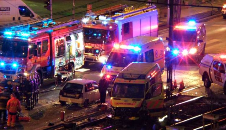 A tájékoztatás szerint a balesetben négyen megsérültek. A rendőrség a környező utcákba tereli a forgalmat. A balesetben résztvevő egyik jármű egy mentőautó volt.