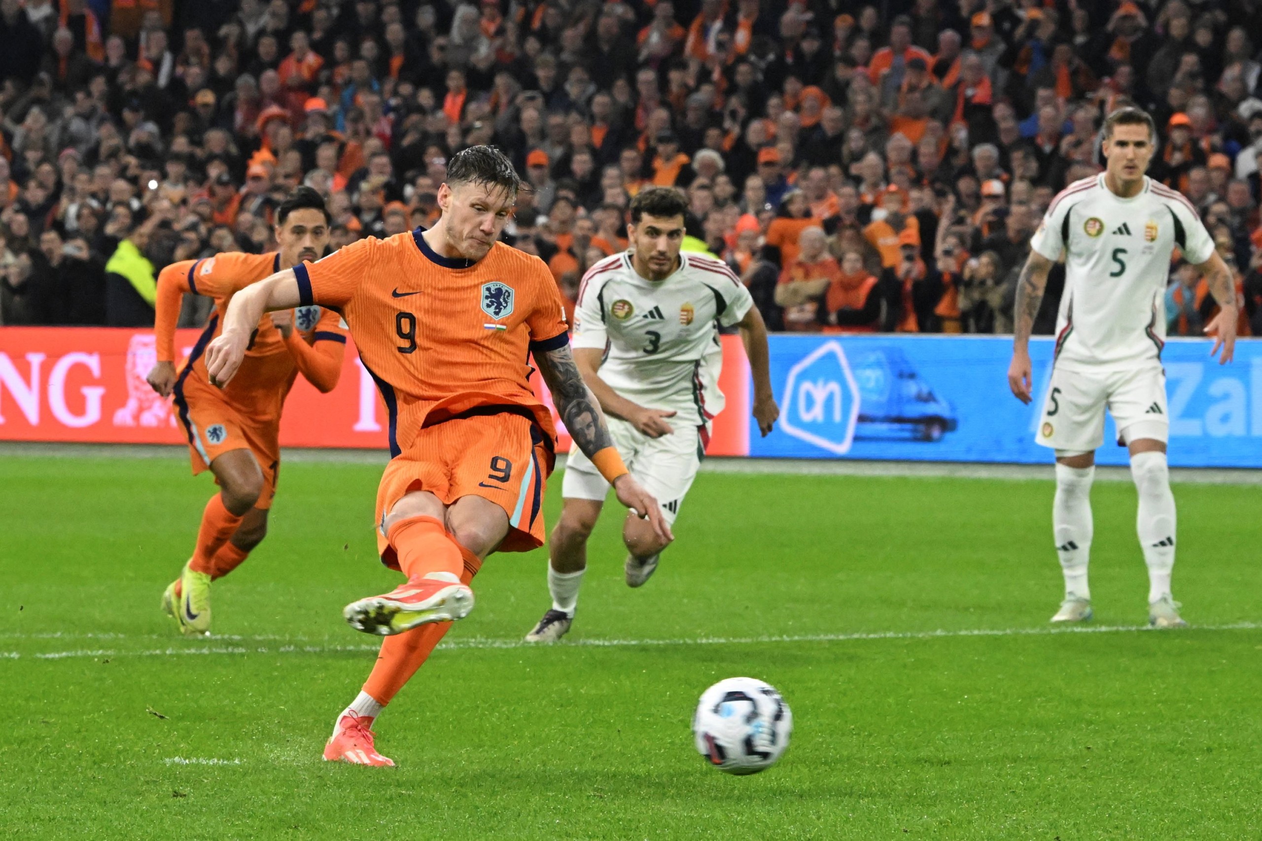 A meccs eredménye teljesen eltörpül a történtek miatt, érthető módon a játékosok is nehezen élték meg a folytatást. A Nemzetek Ligája A divíziójának 3. csoportjában játszott Hollandia - Magyarország mérkőzés eredménye: 4-0. Képünkön a holland Wout Weghorst tizenegyes gólja. Fotó: MTI/Koszticsák Szilárd Képünkön a holland Wout Weghorst tizenegyes gólja. Fotó: MTI/Koszticsák Szilárd