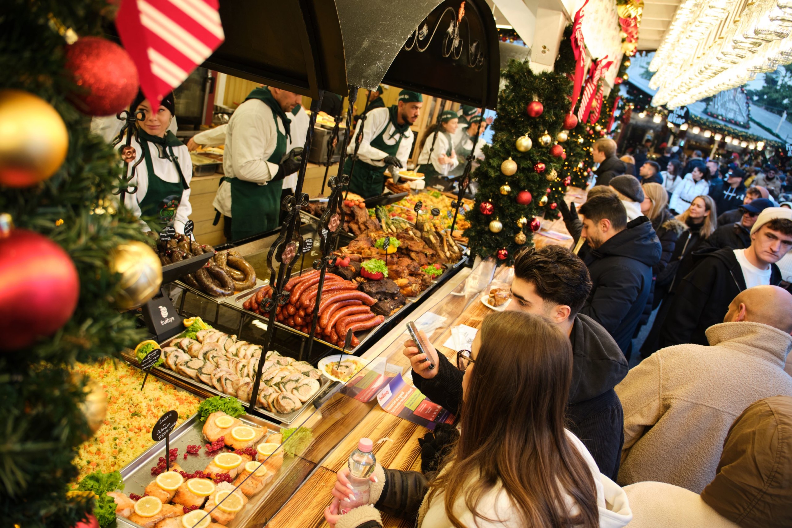 Megnyíltak a karácsonyi vásárok Budapest belvárosában. Körbefotóztuk az Advent Bazilika és a Vörösmarty Classic Xmas gasztronómiai kínálatát és árait. Ínycsiklandó finomságokból nincs hiány, a dorbézolásnak csak a pénztárcánk szabhat határt. Hétköznap 1600 forintért, hétvégén pedig emellett 2500 forintért is kaphatók ételek. Lángos 2000 forinttól, kürtős kalács 2800 forinttól, forralt bor 1450 forinttól kapható, a disznóságoknál, egyéb főételeknél és italoknál árakban határ a csillagos ég. Fotó: Gulyás Kristóf