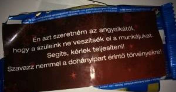 A kormányfő a Dohánykereskedelmi Dolgozók Szakszervezetétől kapott ajándékba egy csokit, amelyre családok és kisgyermekek képét nyomtatták, és arra kérték a képviselőket, ne szavazzák meg a dohányipart érintő törvényeket.