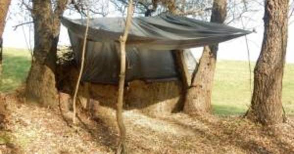 Egy fekete takarófólia alatt vészelik át az esőt és a szelet a Maros árterében dolgozó közmunkások.