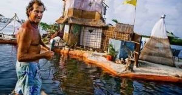 Egy brit férfi, Richart Sowa mintegy 150 000 darab üres műanyag palack felhasználásával épített magának úszó szigetet.