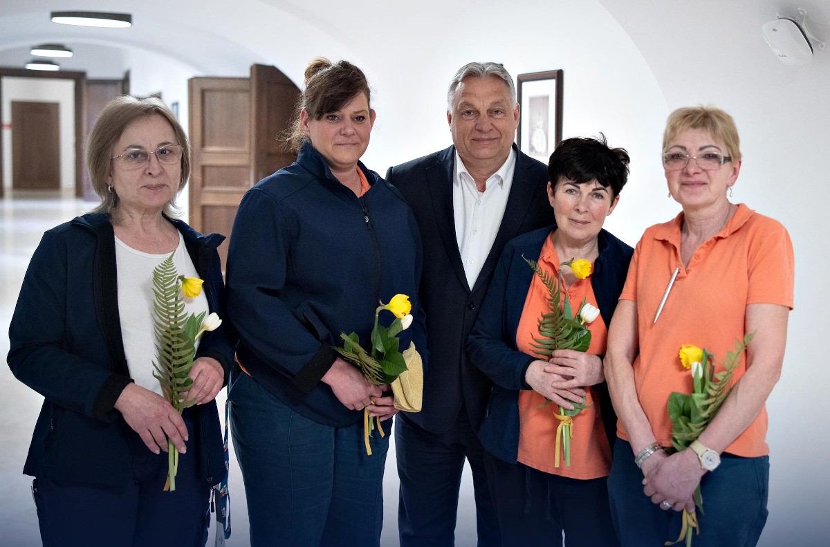 Orbán Viktor nőnap alkalmából megköszöntötte a Karmelita takarítónőit. Forrás és fotó: Orbán Viktor / Facebook